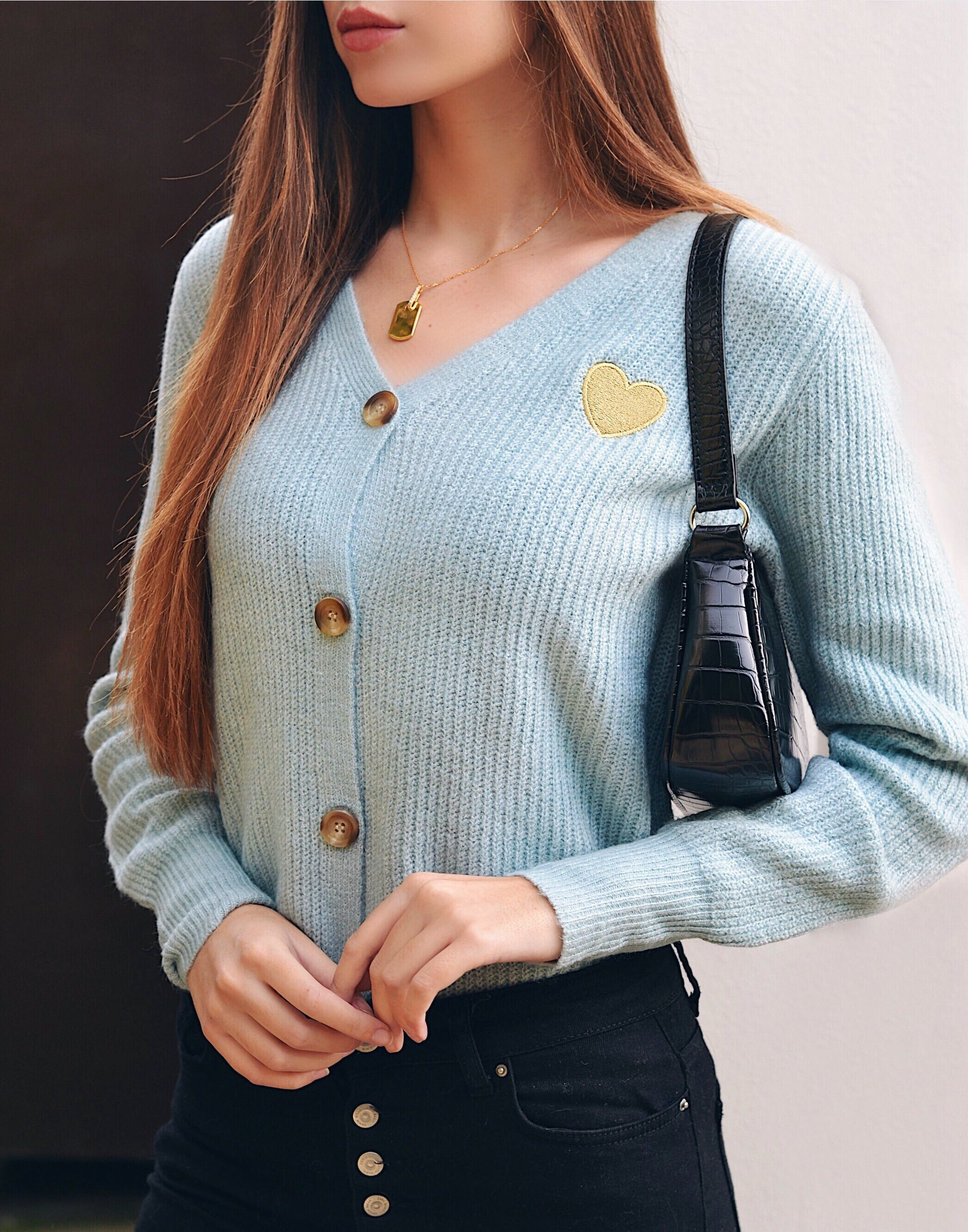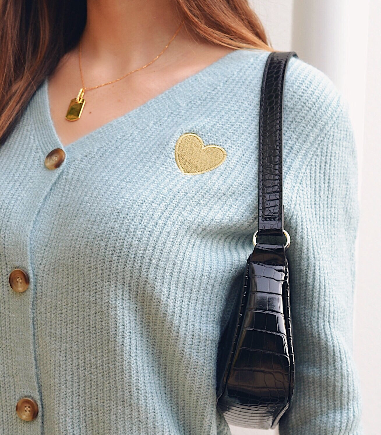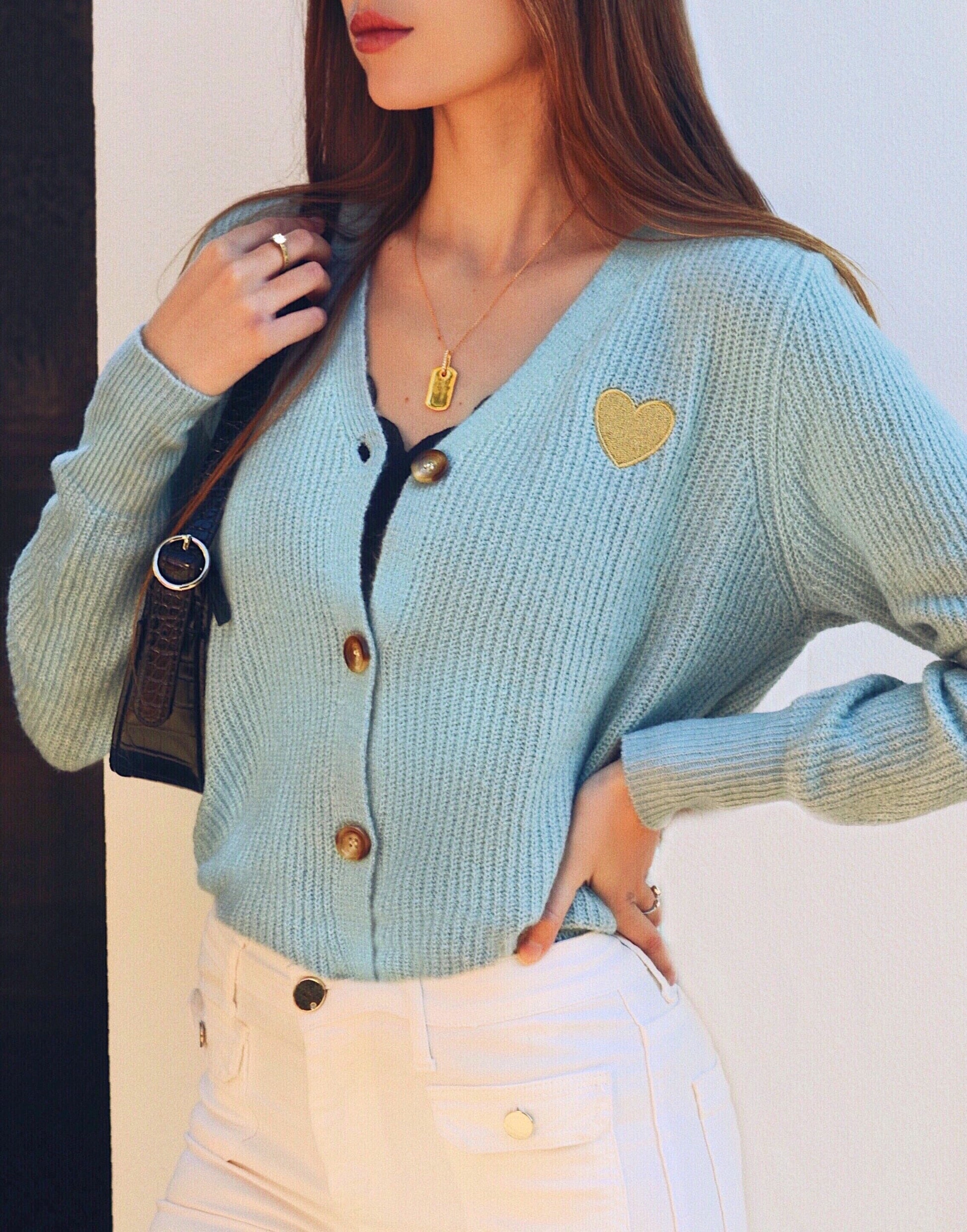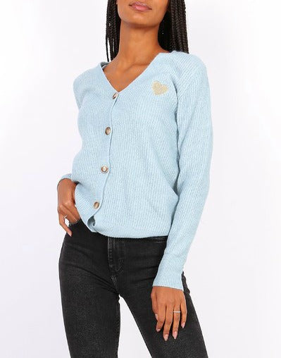 ¡No puede ser más mono el cárdigan Janette! Nos encanta el detalle del corazón en la parte superior izquierda. El color azul pastel hace que sea un jersey muy versátil y que puedas crear diferentes looks con él. Sin duda, es uno de los jerséis más dulces de la nueva colección.