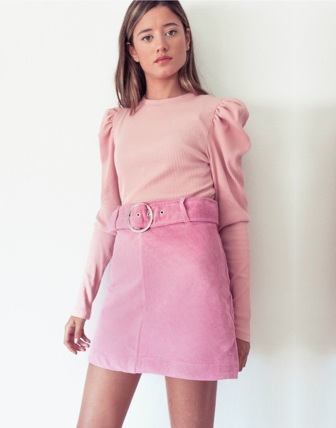 ¡Nuestra falda Irina es preciosa! Es de pana, de color rosa y lleva cinturón. Ideal para este otoño/invierno.